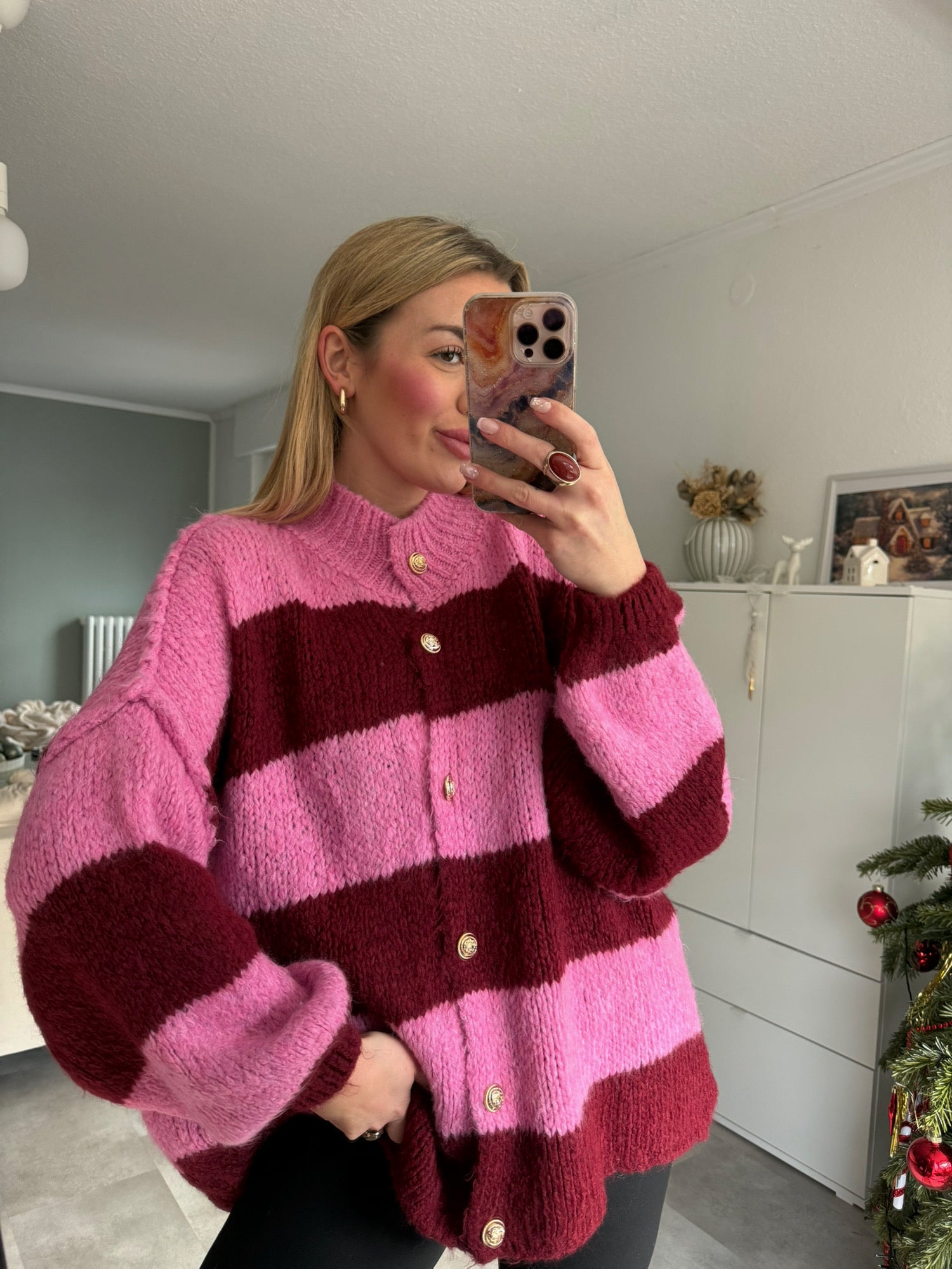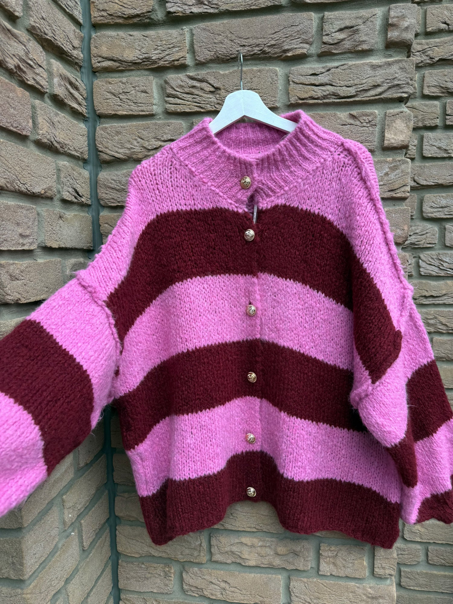 Produkt Form Oversize Strickjacke mit goldenen Knöpfen | gestreift | bordeaux €39,00 Die Oversized Strickjacke mit goldenen Knöpfen ist nicht nur super kuschelig, sondern auch ein echter Hingucker! Mit ihrem übergroßen Schnitt... Lesen Sie mehr Lesen Sie mehr Schnelle LieferzeitenBequeme ZahlungsmöglichkeitenKostenloser Versand ab 79€ Nicht vorrätig Bei diesem Artikel handelt es sich um einen wiederkehrenden Kauf oder Kauf mit Zahlungsaufschub. Indem ich fortfahre, stimme ich den Stornierungsrichtlinie zu und autorisiere Sie, meine Zahlungsmethode zu den auf dieser Seite aufgeführten Preisen, in der Häufigkeit und zu den Terminen zu belasten, bis meine Bestellung ausgeführt wurde oder ich, sofern zulässig, storniere.